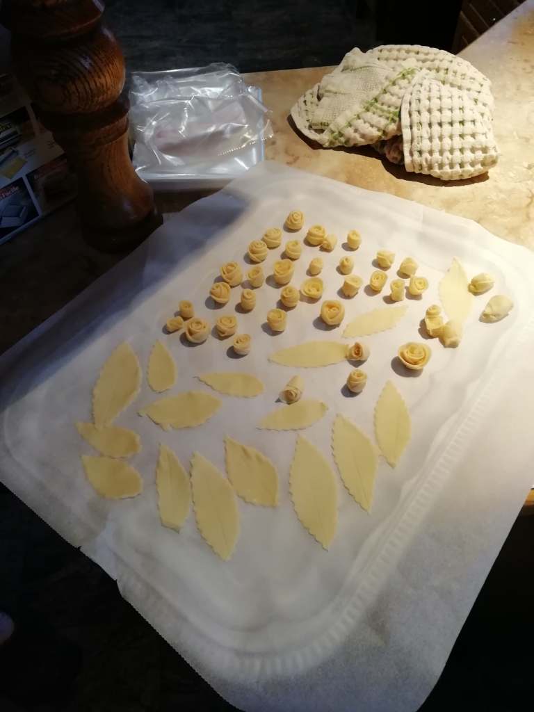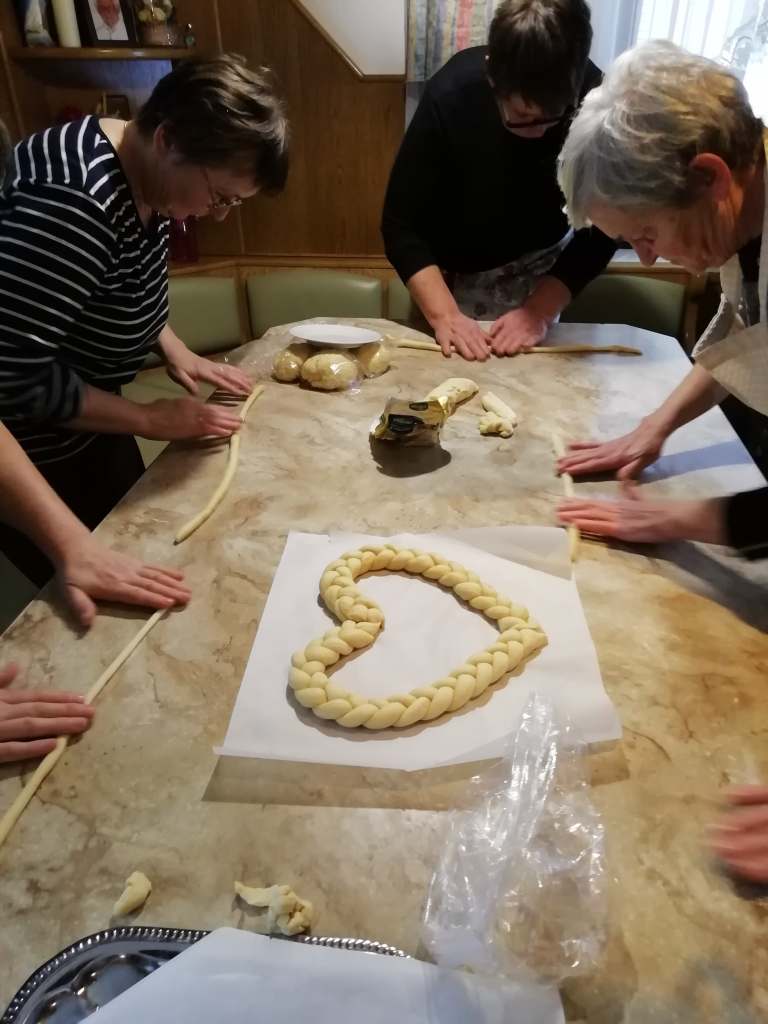 Zainteresirane smo se z opazovanjem pa tudi posnemanjem naučile izdelati praznične košarice, pletenice in okraske. Znanje bomo seveda pridno uporabljale v praksi, že v januarju pa bomo lahko svoje izdelke pokazale na naslednji društveni razstavi kruha in kvašenih izdelkov.