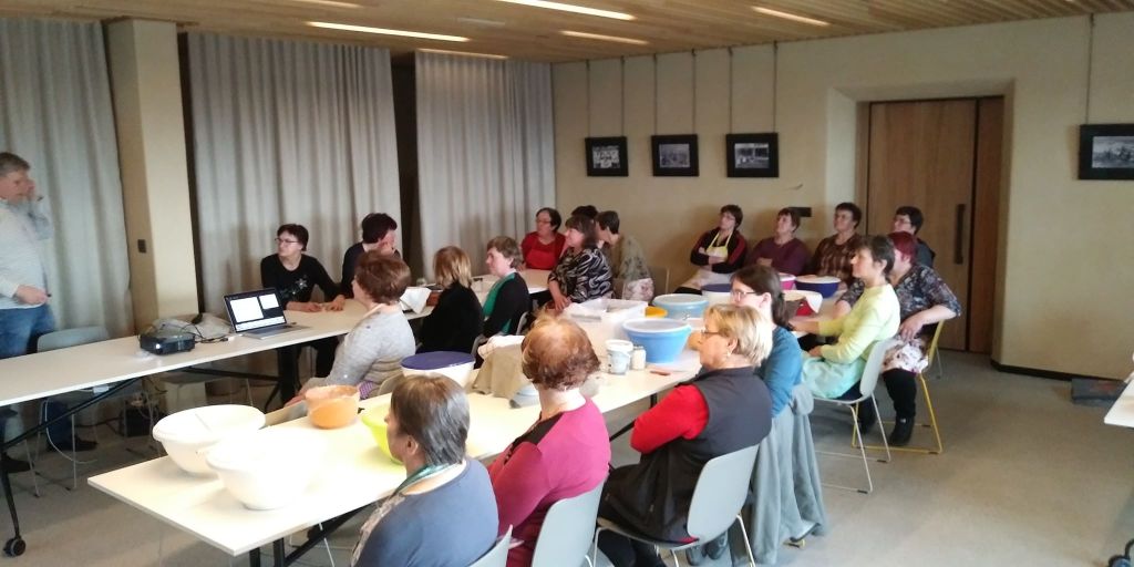 Konec februarja so članice krajevnega odbora Trebnje in krajevnega odbora Velika Loka imele tečaj peke kruha iz naravnega kvasa in in izdelava sladkih in slanih namazov iz skute. Mentor za kruh je bil gospod Jože Senegačnik, namaze pa so članice pripravljale pod okriljem članice Nade Marn. Tečaja se je udeležilo 22 članic.