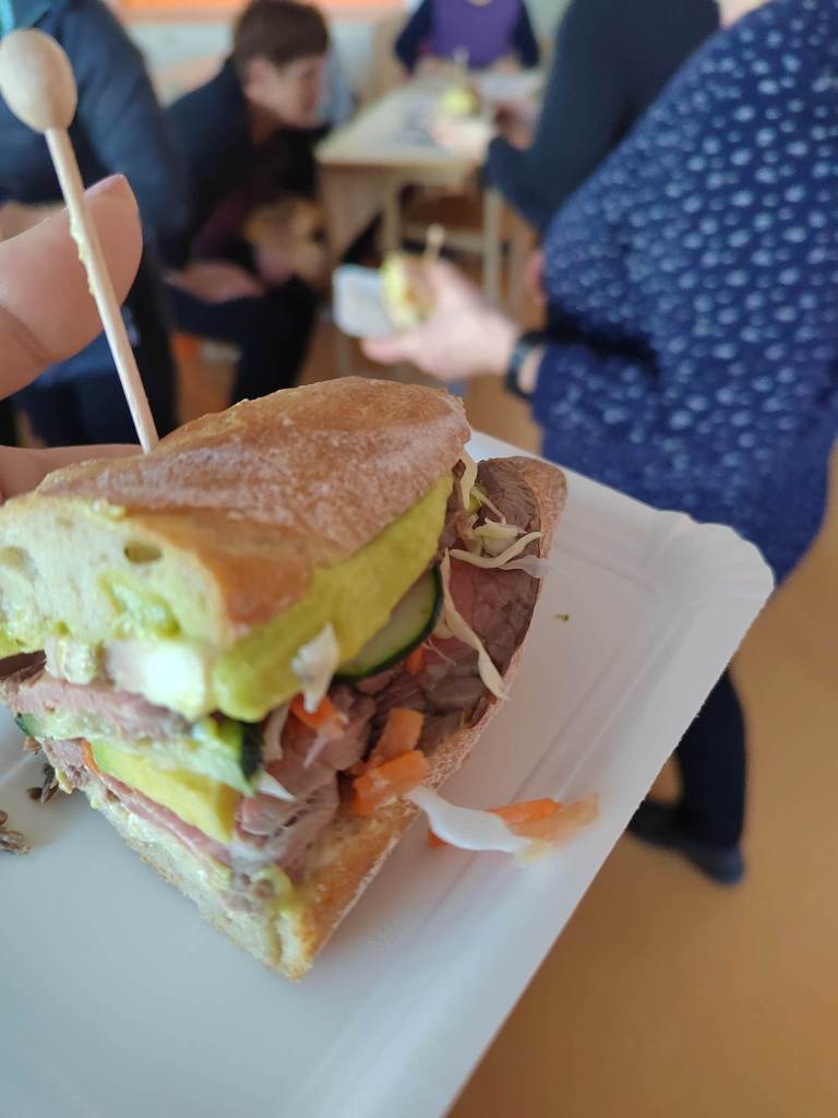 - bogat kruhov sendvič z roastbeefom